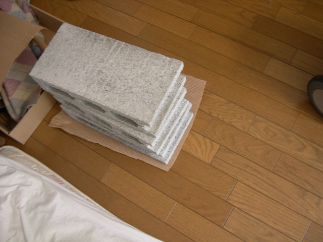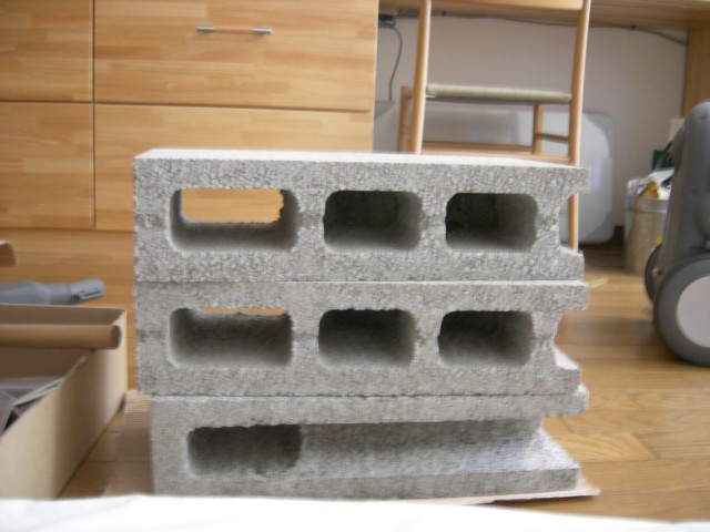 どうやら世の中には欠けるピンコロと欠けないピンコロがあるようです。(ピンコロとは此処ではコンクリートブロックのこと。)ケイヨーD2で価格が200円ぐらいで売ってたピンコロは欠けない感じ、ジョイフル本田で価格が160円ぐらいで売ってたのは欠ける感じ。例でしかないですがいちよう紹介しておきました。欠けるピンコロは、使えなくはないのですが動かす度に掃除機が必要となります。結構ぼろぼろ行きますよ。あとブロック塀なんかで使われる物もかなり欠ける物がありますので、そこはご注意下さい。