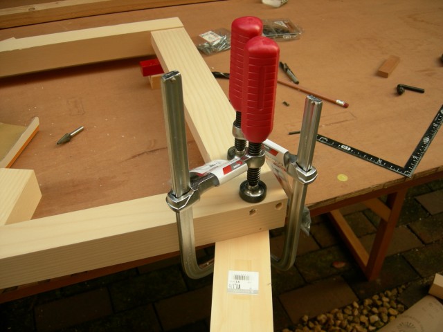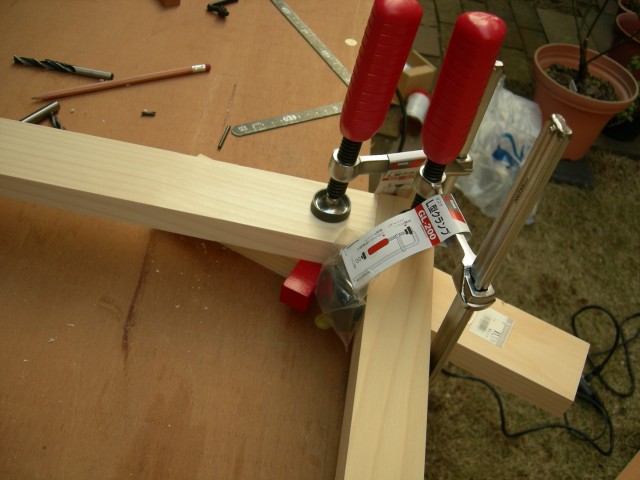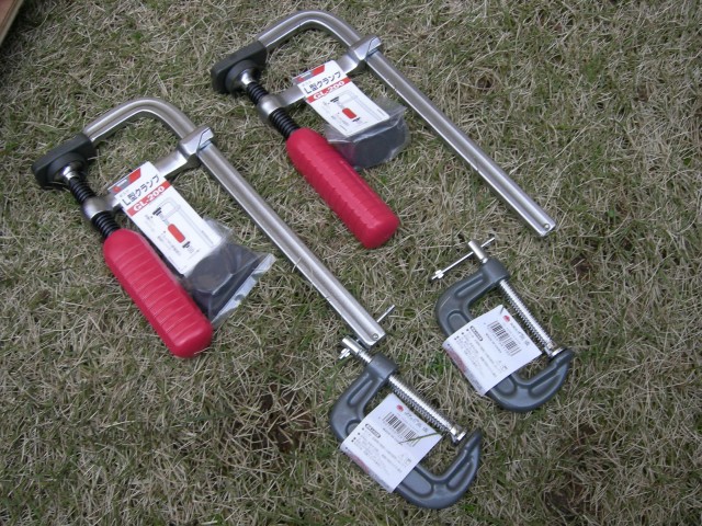 クランプは工具として是非そろえておきましょ。これがあるかないかでできあがる家具等の精度が圧倒的に向上します。所詮人間の腕力はたいしたことないので、手で押さえてるだけではずれます。のこぎりで切るとき、釘を打ち込むとき、ボンドで固定するとき、ネジを打ち込むとき、固定しましょ。出来れば台みたいなのに固定しましょ。